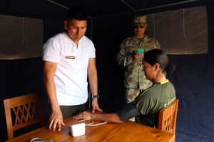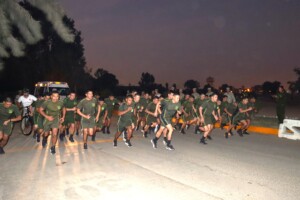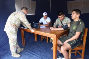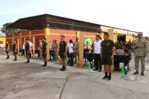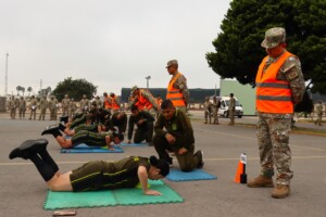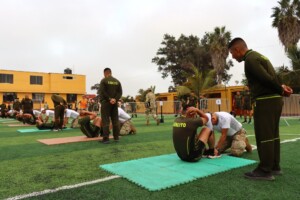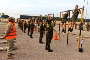 Los oficiales alumnos del LXX Programa de Comando y Estado Mayor (PCEM) rindieron la primera parte del test de capacidad física, el cual contempla ejercicios de barras, planchas, abdominales y carrera. Como parte del protocolo previo a la evaluación, a cada uno de los participantes se les midió el índice de masa corporal (IMC) y la presión arterial, a fin de asegurar que se encontraran en condiciones físicas óptimas para afrontar las exigencias de la prueba.