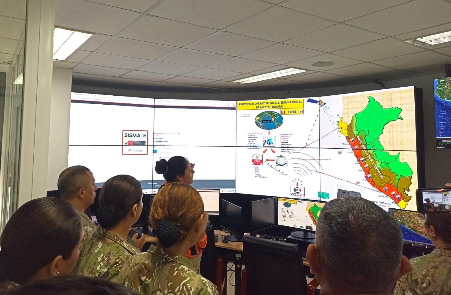 El II Programa de Planeamiento Militar para la Toma de Decisiones para Oficiales de Reserva de esta casa del pensamiento estratégico militar visitaron al Centro de Operaciones de Emergencia Nacional (COEN) del Instituto Nacional de Defensa Civil (INDECI).