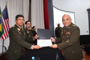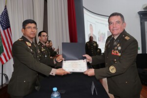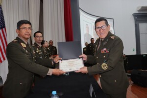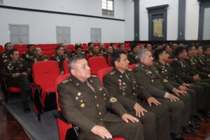 Durante la ceremonia, el General Valverde Virhuez destacó la calidad académica de los diplomados y la importancia de contar con oficiales altamente capacitados para tomar decisiones estratégicas en la gestión de riesgos y la implementación de políticas públicas.