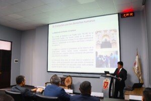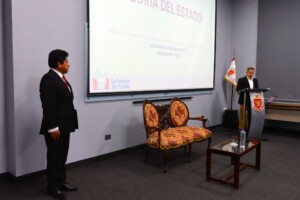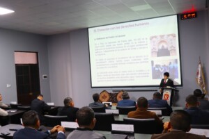 El día de hoy, los oficiales del Programa de Alto Mando de la Escuela Superior de Guerra del Ejército participaron en la conferencia titulada “Teoría del Estado”, a cargo de un distinguido representante de la Defensoría del Pueblo, quien compartió importantes reflexiones y análisis sobre la estructura, fundamentos y principios que sostienen al Estado en el marco de la democracia.