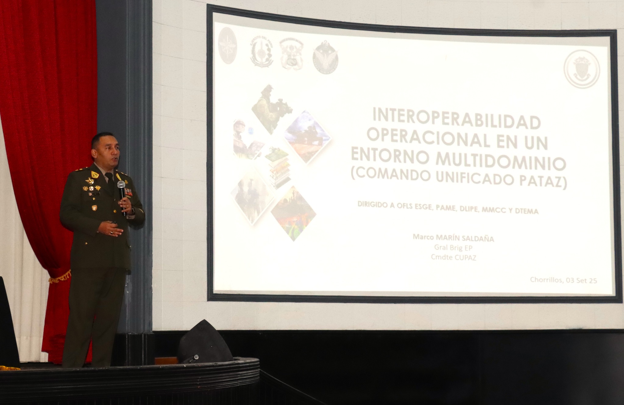 En el marco de la educación integral que brinda esta prestigiosa casa de estudios y acorde a los nuevos desafíos que plantea el mundo contemporáneo; los oficiales estudiantes de la Escuela Superior de Guerra del Ejército – Escuela de Posgrado participaron en una importante conferencia titulada «Adaptación Operacional en un Entorno Multidominio» a cargo del señor General de Brigada Comandante General del Comando Unificado de Pataz.