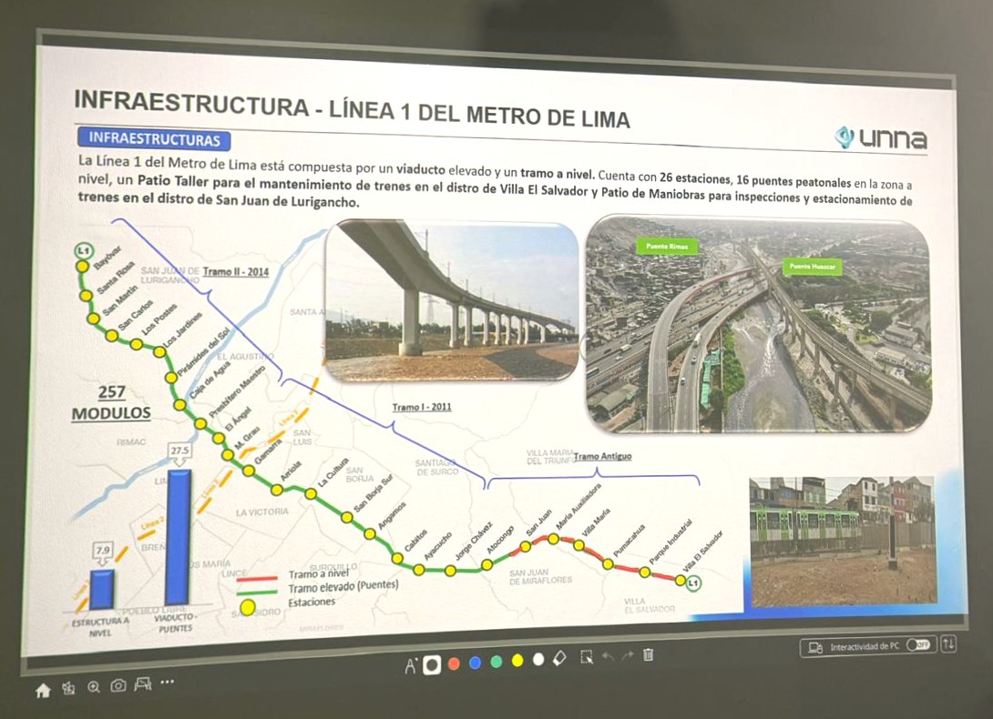 Los oficiales estudiantes del LXIX Programa de Comando y Estado Mayor (PCEM) de la Escuela Superior de Guerra del Ejército – Escuela de Posgrado, integrantes del Diplomado en Gestión de Infraestructura de la Universidad San Ignacio de Loyola – EPG, visitaron las instalaciones de la Línea 1 del Metro de Lima.