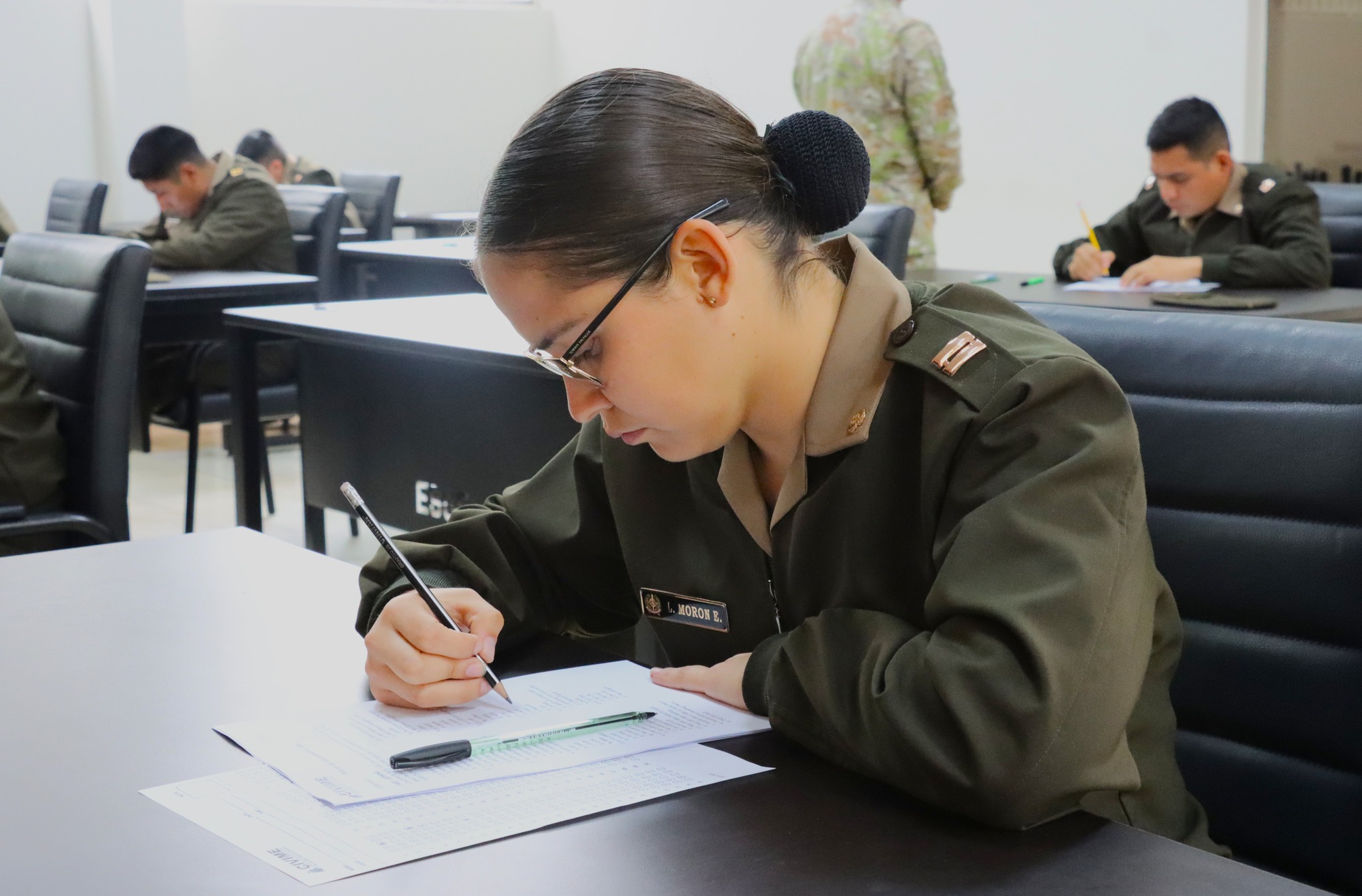Con determinación y disciplina, los oficiales estudiantes del grado de teniente de las Escuelas de Armas y Servicios COEDE continúan el proceso de evaluaciones previas al inicio de su semestre académico, esta vez rindieron el examen de conocimientos e inglés.