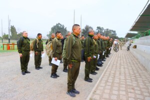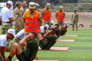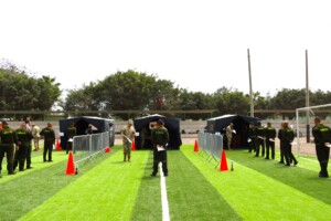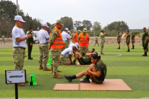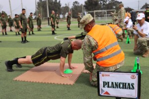 En el marco del proceso de selección para el VII Diplomado de Liderazgo en Planeamiento Estratégico (DLIPE), los señores oficiales postulantes del grado de Teniente Coronel rindieron la primera parte del examen de esfuerzo físico en las instalaciones del Comando de Educación y Doctrina del Ejército. En cumplimiento de los protocolos de seguridad, previamente se realizó el control de la presión arterial a cada postulante.