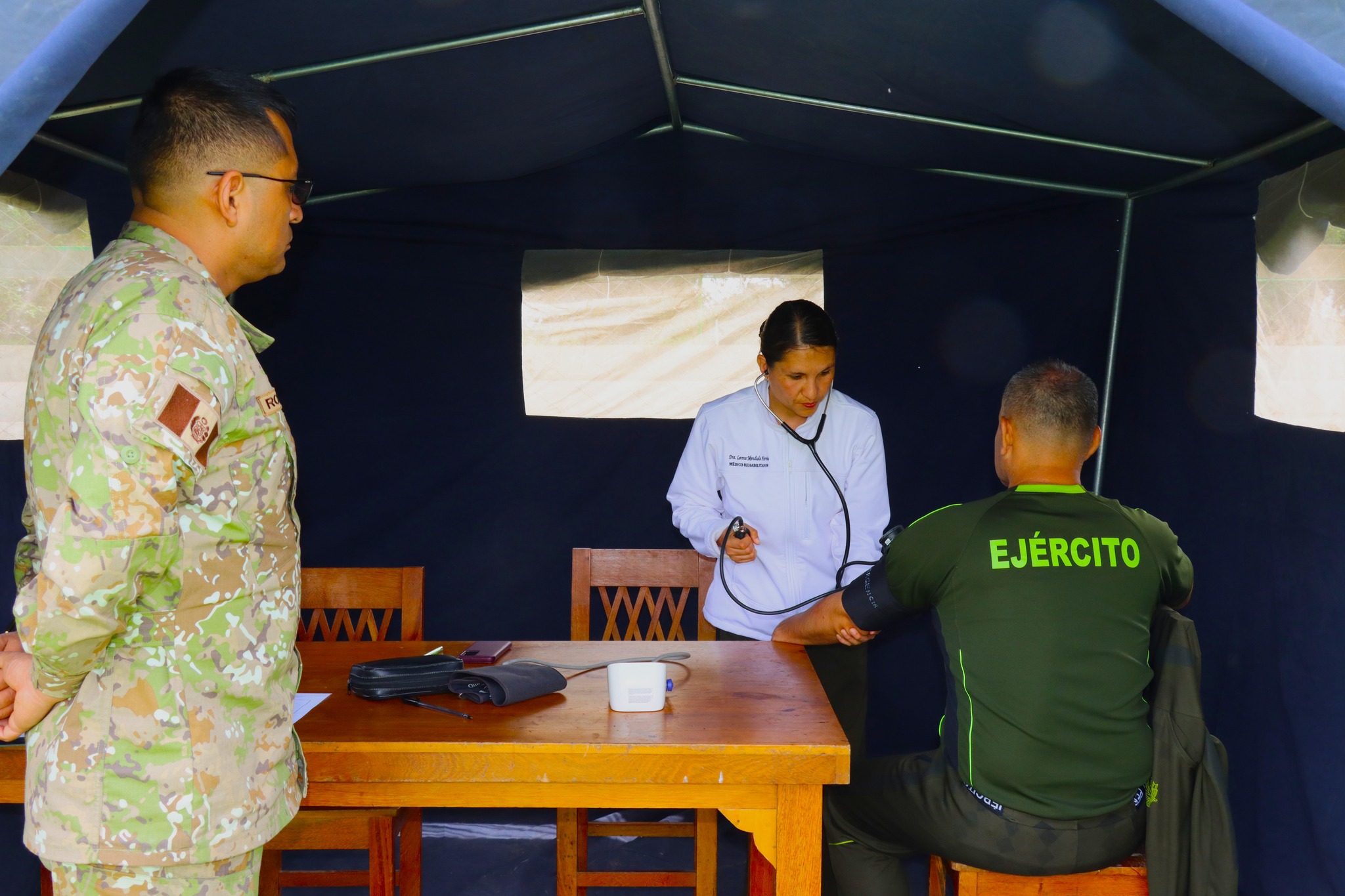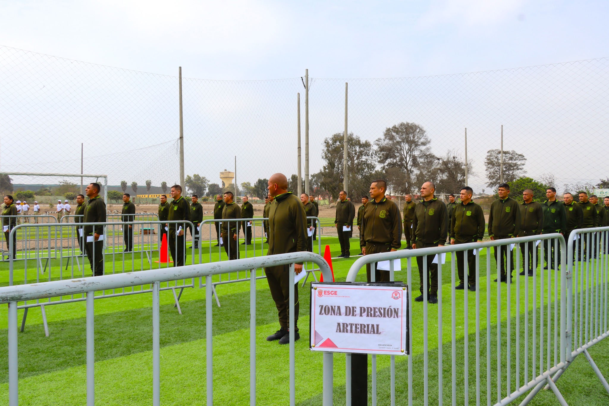 En el marco del proceso de selección para el VII Diplomado de Liderazgo en Planeamiento Estratégico (DLIPE), los señores oficiales postulantes del grado de Teniente Coronel rindieron la primera parte del examen de esfuerzo físico en las instalaciones del Comando de Educación y Doctrina del Ejército. En cumplimiento de los protocolos de seguridad, previamente se realizó el control de la presión arterial a cada postulante.