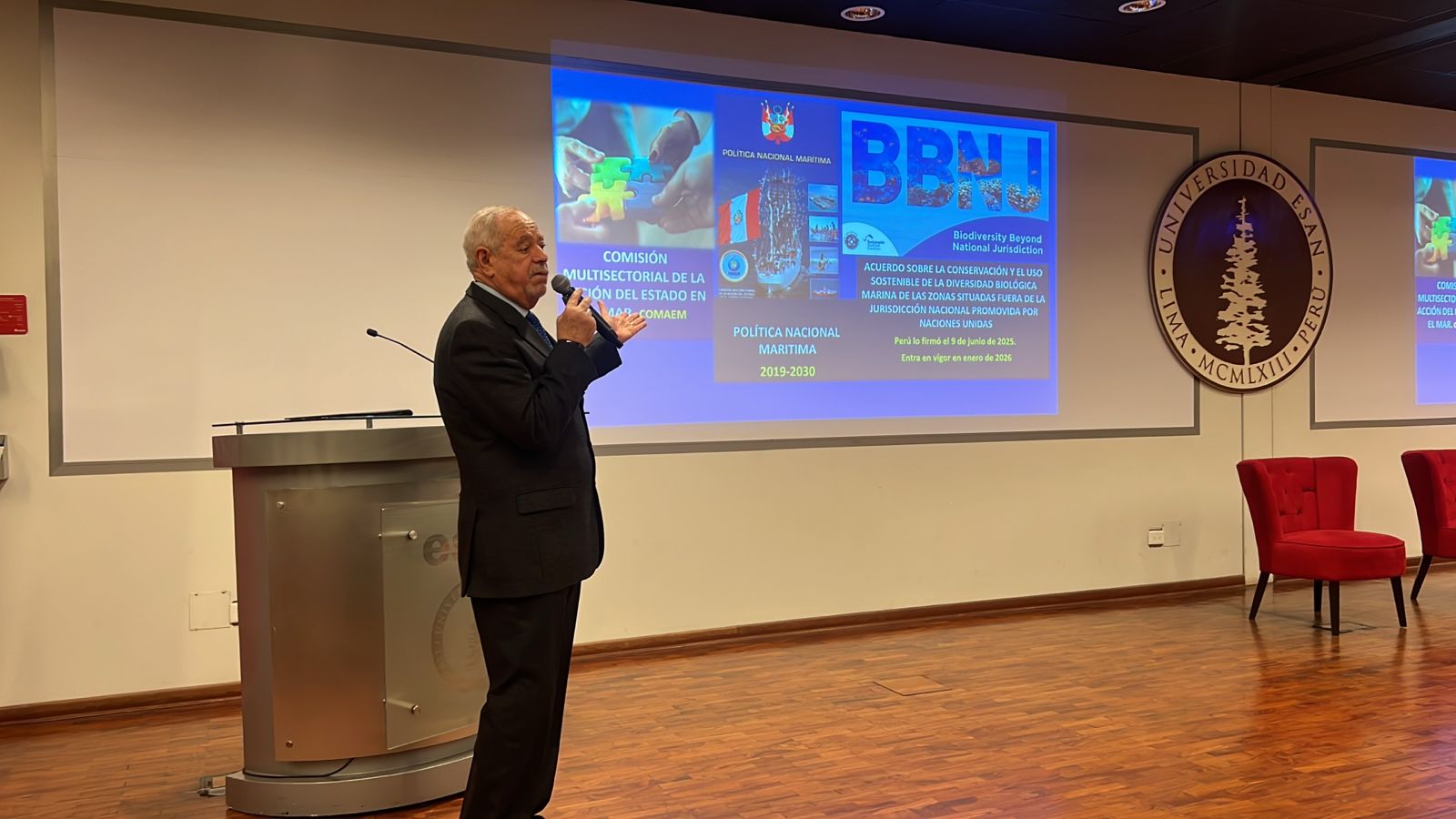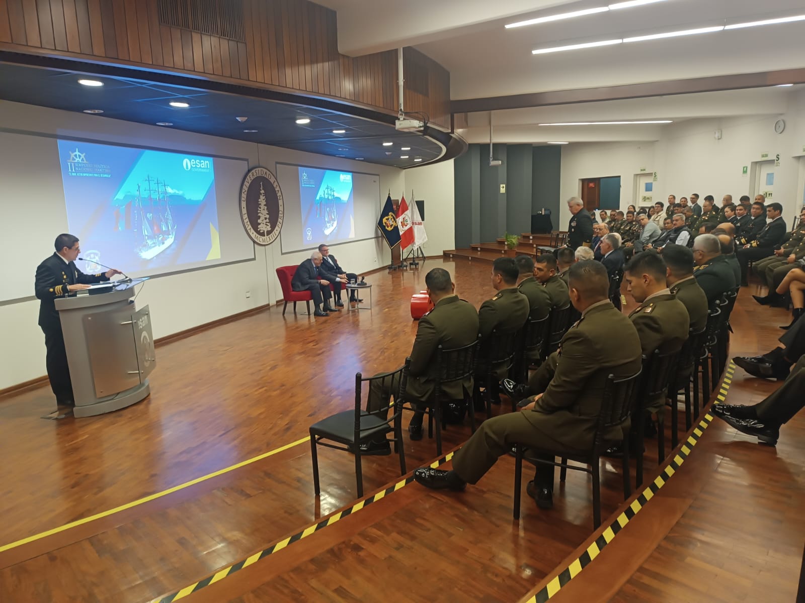Oficiales estudiantes de la Escuela Superior de Guerra del Ejército – Escuela de Posgrado (ESGE-EPG) participaron en el simposio “Política Nacional Marítima: El Mar, actor importante para el desarrollo”, organizado por la Universidad ESAN. Este evento académico reunió a destacados especialistas y autoridades del sector defensa, economía y medio ambiente, con el propósito de analizar el rol estratégico del mar en el desarrollo nacional.