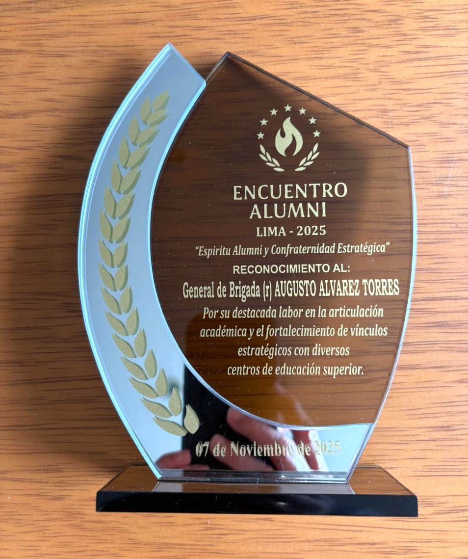 Nuestro destacado docente, el Sr. Gral Brig (R) Augusto Alvares Torres obtuvo un merecido reconocimiento durante los actos celebratorios por el 75° aniversario del CAEN, dicho homenaje fue entregado por la comunidad Alumni 2025, en mérito a su sobresaliente labor académica y su firme compromiso con el fortalecimiento de vínculos estratégicos con reconocidos centros de educación superior a nivel nacional e internacional.