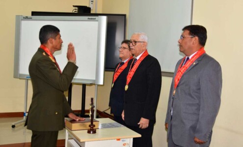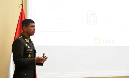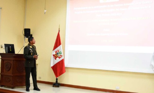 El tema de tesis fue: “Fortalecimiento de la participación de las fuerzas armadas, en la gestión reactiva del sistema nacional de gestión del riesgo de desastres en el Perú, periodo 2022-2023”