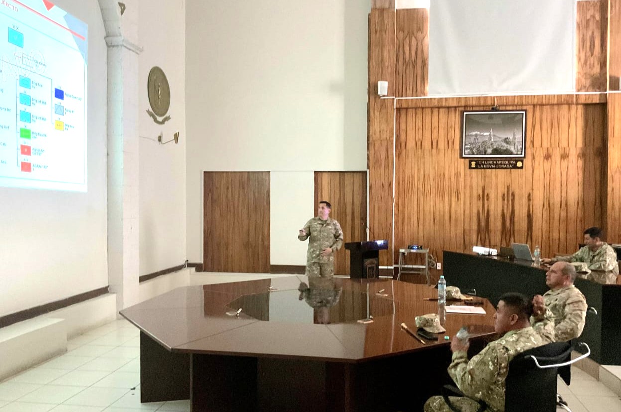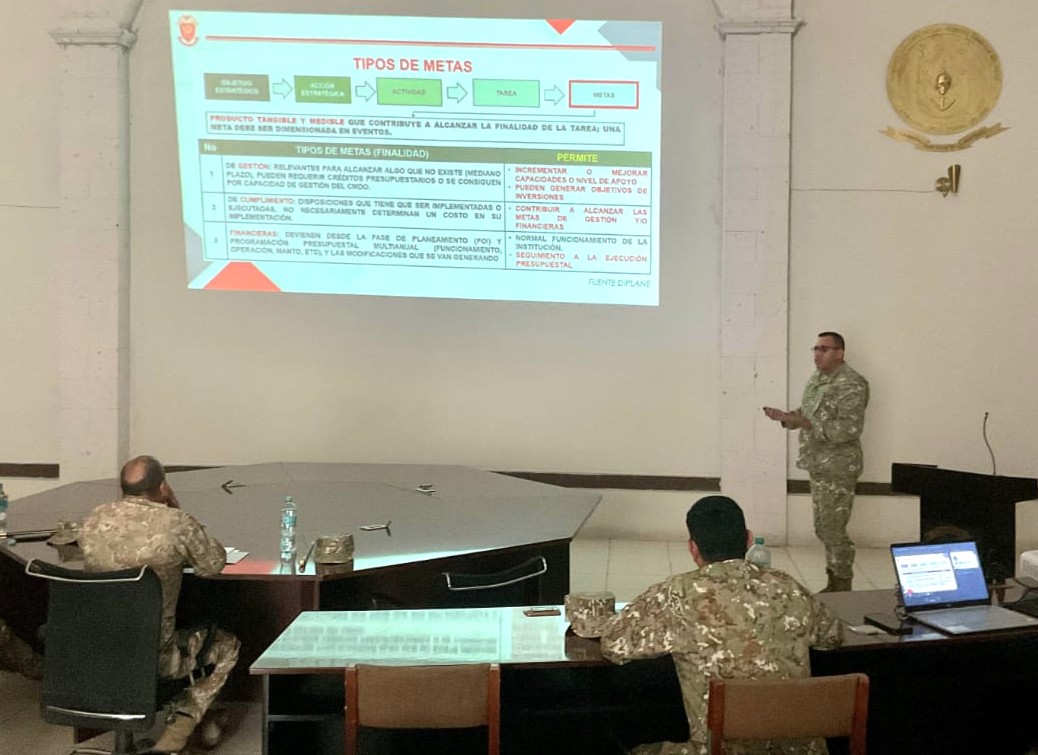 Los oficiales estudiantes del VI Diplomado de Liderazgo y Planeamiento Estratégico (DLIPE), quienes realizan sus prácticas operativas en la III División de Ejército, presentaron su trabajo final ante el señor General de División Jorge Luis Agramonte Aguilar, Comandante General de la III DE.