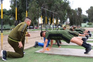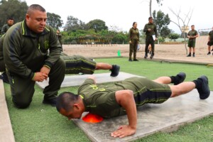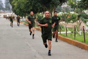 Oficiales alumnos del grado de Teniente Coronel del XI Diplomado de Liderazgo y Planeamiento Estratégico (DLIPE) de la Escuela Superior de Guerra del Ejército – Escuela de Posgrado rindieron la primera parte del Test de Capacidad Física (Diagnóstico). Esta prueba, que incluyó ejercicios de planchas, abdominales y carrera, se desarrolló con el apoyo de la Escuela de Educación Física Militar y Deportes del Ejército.