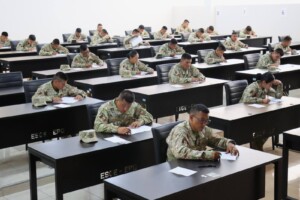 Los oficiales del grado de Teniente del Curso Básico de las Escuelas de Armas y Servicios fueron evaluados en conocimientos e idioma inglés, con la finalidad de constatar su nivel doctrinario y el manejo de una competencia esencial para su desempeño profesional y la proyección institucional.