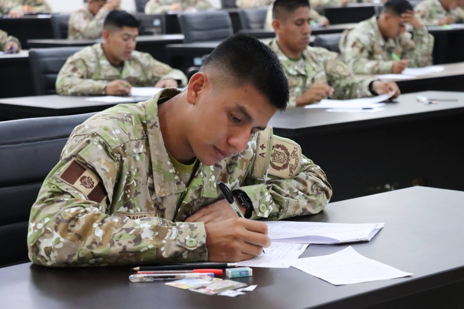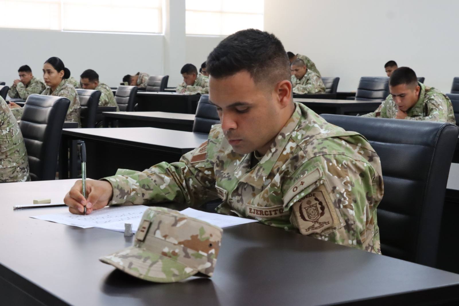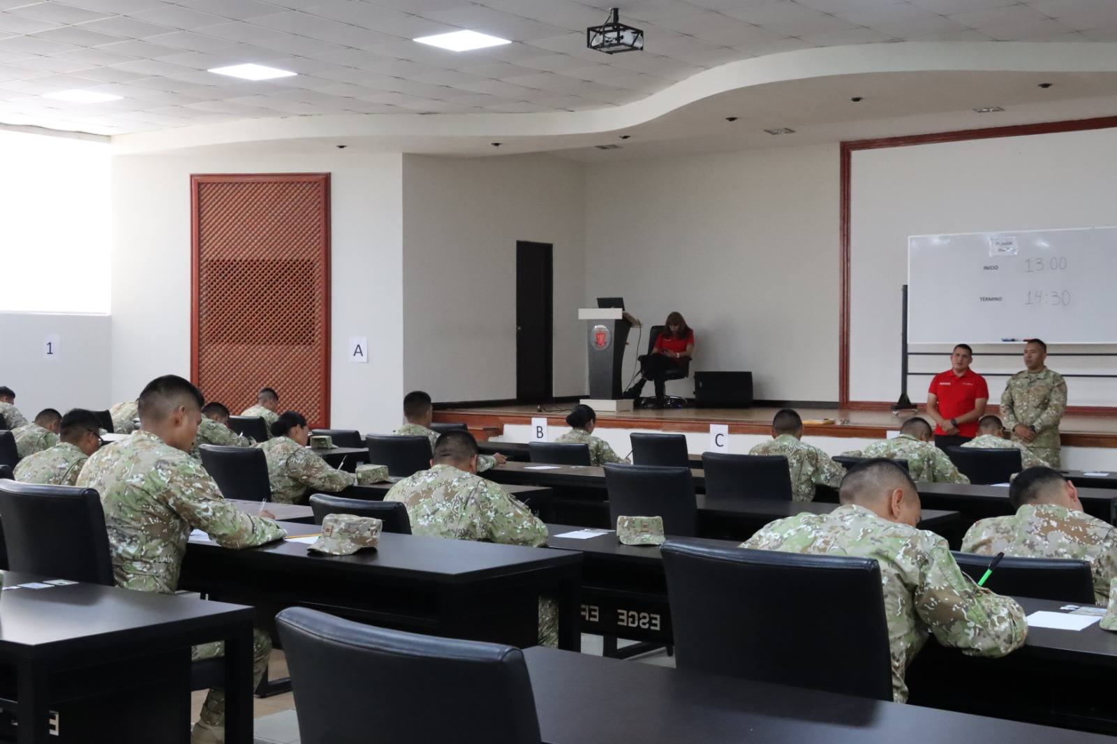 Los oficiales del grado de Teniente del Curso Básico de las Escuelas de Armas y Servicios fueron evaluados en conocimientos e idioma inglés, con la finalidad de constatar su nivel doctrinario y el manejo de una competencia esencial para su desempeño profesional y la proyección institucional.