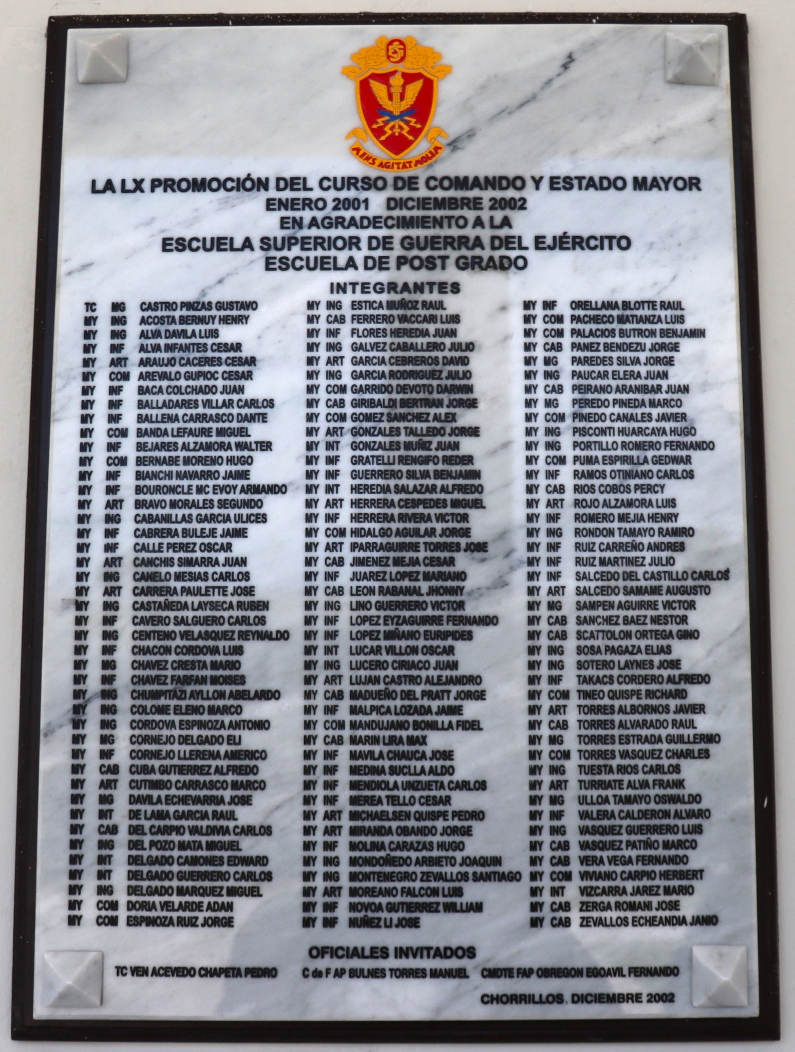 En un acto marcado por la camaradería, el espíritu de cuerpo y un profundo sentido de pertenencia, la LX Promoción del Curso de Comando y Estado Mayor de la Escuela Superior de Guerra del Ejército – Escuela de Posgrado (ESGE-EPG) retornó a esta casa del pensamiento estratégico militar para participar en la ceremonia de develación de su placa conmemorativa.