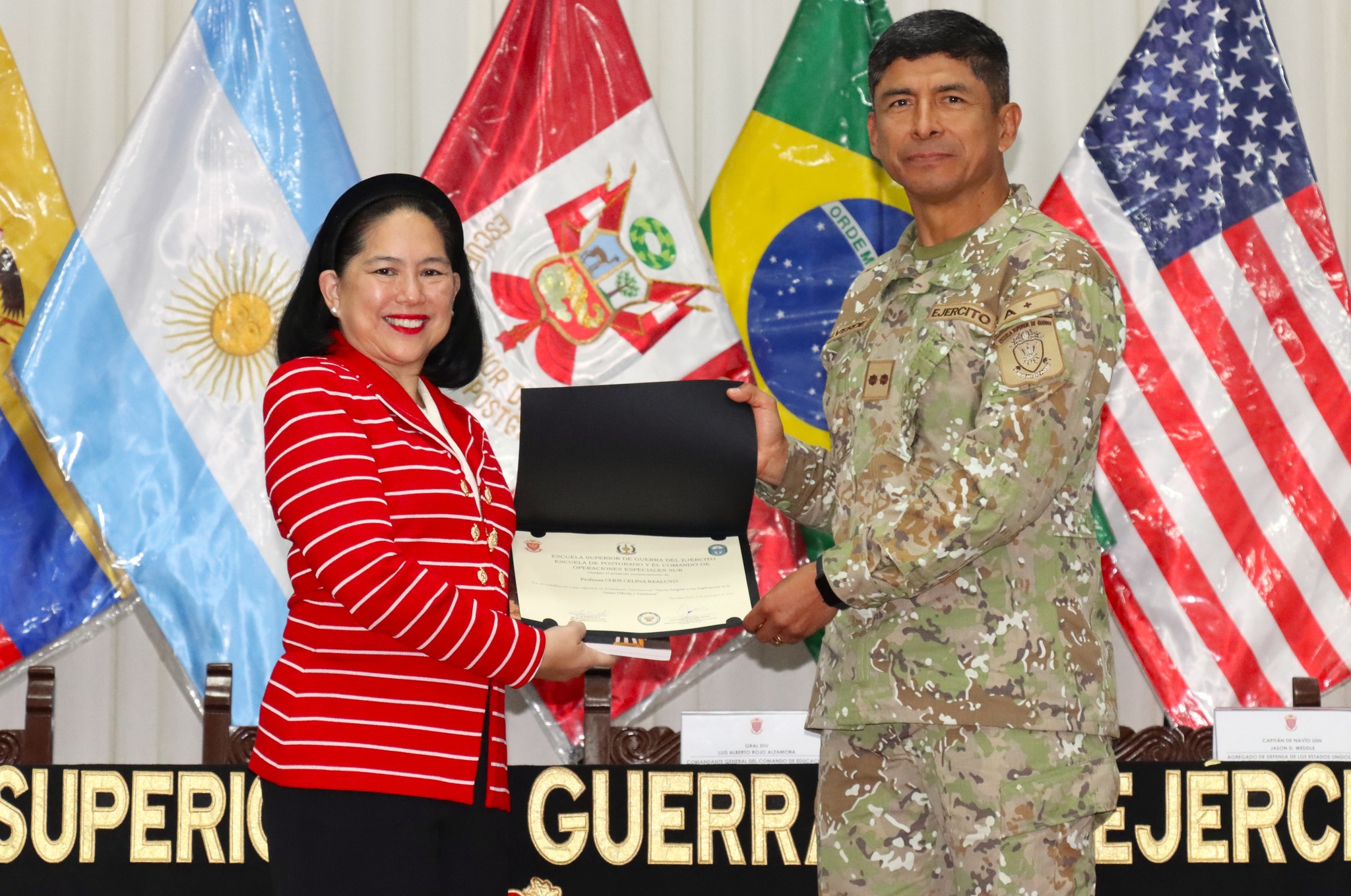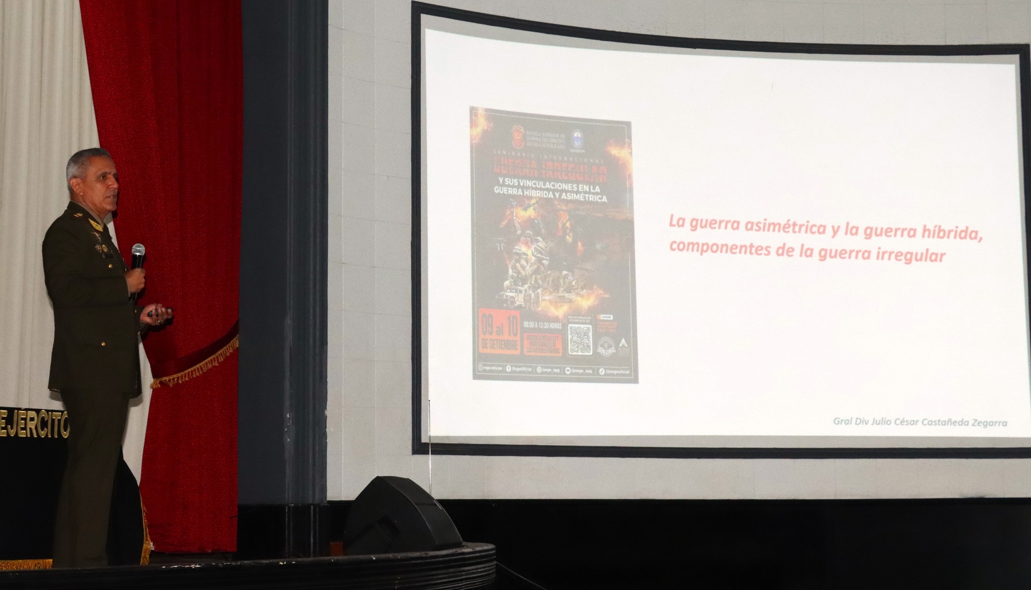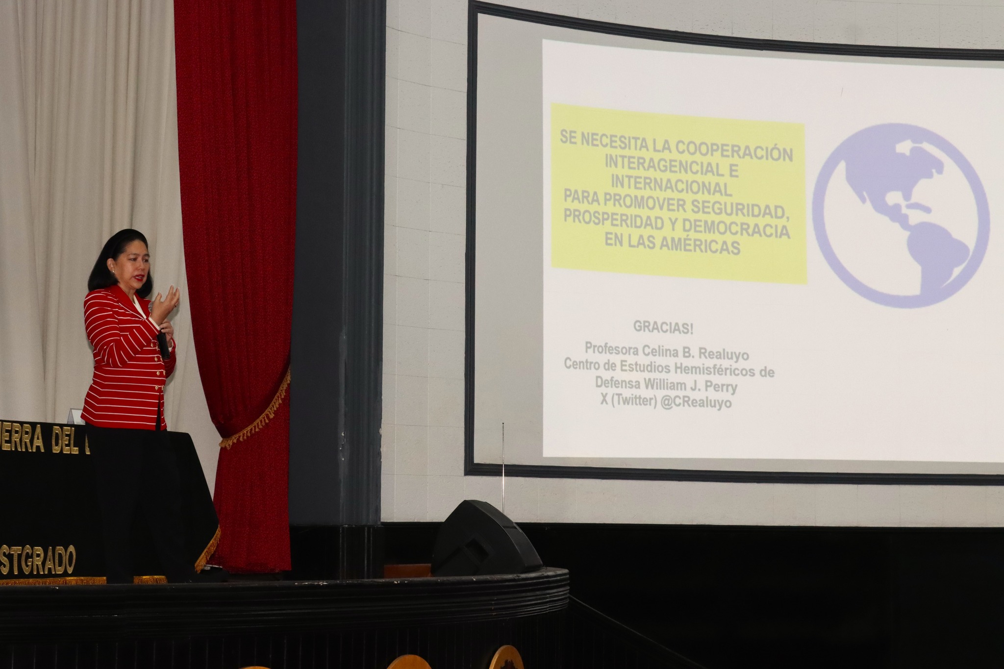 El primer día del Seminario Internacional “Guerra Irregular y sus Implicancias en la Guerra Híbrida y Asimétrica” se desarrolló con la participación de destacados ponentes nacionales e internacionales, tales como la Dra. Celina Realuyo, Profesora de Práctica en el Centro de Estudios Hemisféricos de Defensa William J. Perry en la Universidad de Defensa Nacional de los Estados Unidos de Norteamérica, el Sr. Gral Brig Director de Inteligencia del Ejército y el Sr. Gral Div Comandante General del Comando de Operaciones Terrestres del Ejército del Perú.