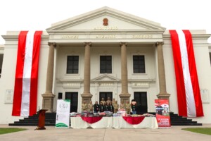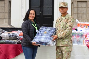 En una expresión concreta de fortalecimiento de lazos de cooperación y apoyo hacia quienes trabajan por el bienestar social, la Escuela Superior de Guerra del Ejército – Escuela de Posgrado realizó un acto de entrega de víveres no perecibles, ropa y calzados en buenas condiciones de uso, como contribución a la campaña «Contra el Friaje» de la Asociación de Damas Voluntarias del Ejército del Perú.