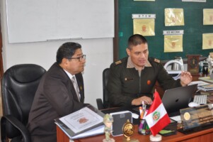 La Escuela Superior de Guerra del Ejército – EPG recibió la vista del Dr Ray Mellin Rubio, director de la Dirección de Supervisión de la Superintendencia Nacional de Educación Superior Universitaria (SUNEDU) junto a expertos de la gestión educativa, como miembros del equipo supervisor académico, y de la Dra Miriam Aliaga Valladares, especialista del Consejo de Evaluación, Acreditación y Certificación de la Calidad de la Educación Universitaria (CONEAU-SINEACE), con el objetivo de observar los procesos educativos que se ejecutan en esta prestigiosa casa de estudios.